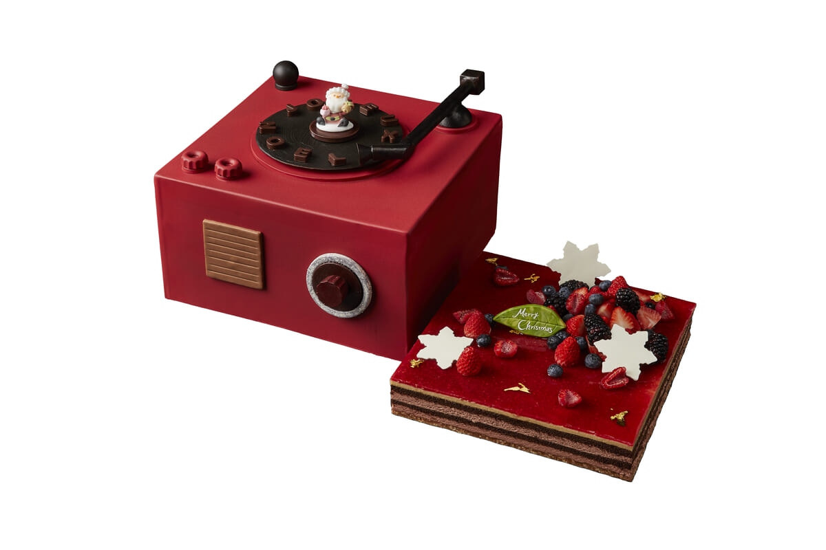 毎年、そのユニークなデザインが話題を呼ぶ数量限定ケーキの2023年のモチーフは、今にも愉快なクリスマスソングが聞こえてきそうなレコードプレーヤー。