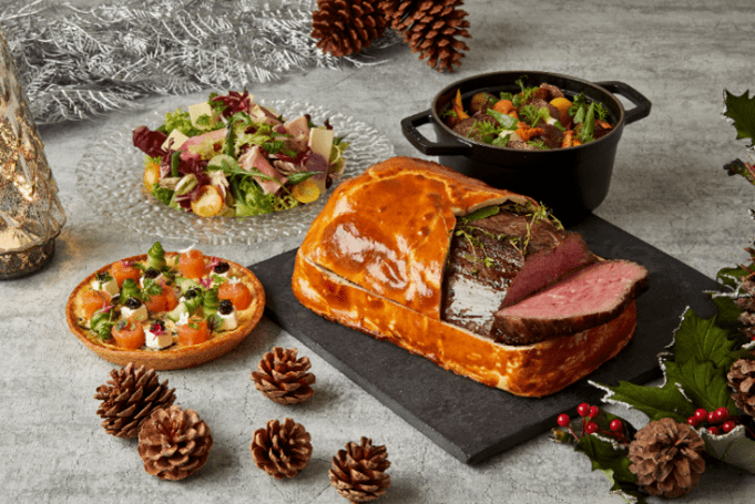 「塩釜パイで包んだ国産牛ロースのオーブン焼き」または「水郷赤鶏のオーブン焼き」の2つのメインディッシュから選べる、クリスマス限定のテイクアウトメニュー。