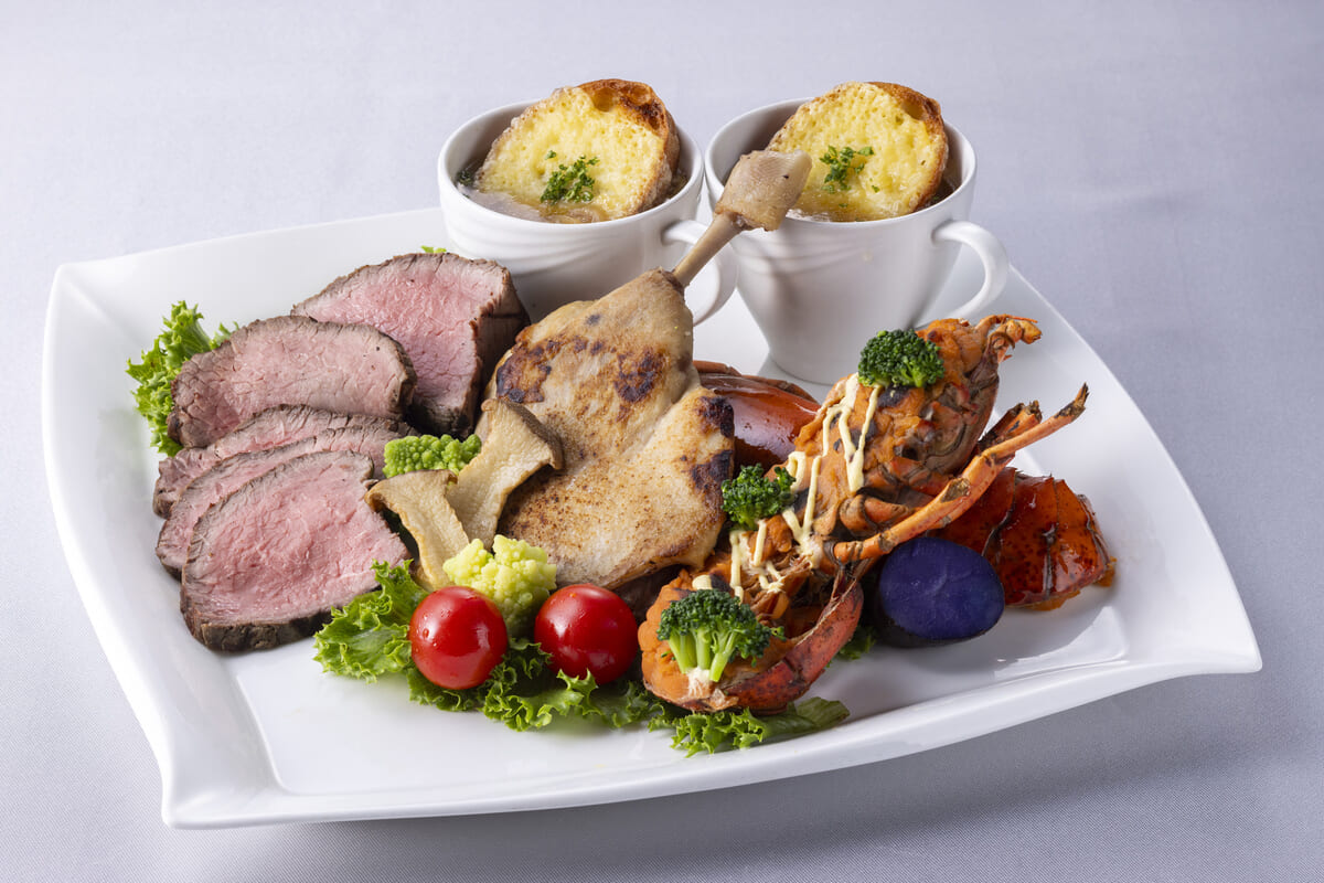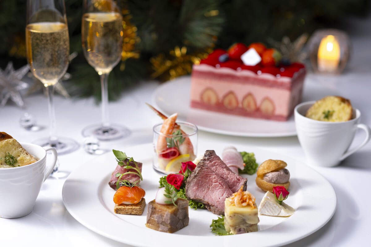 オマール海老1尾を豪快に焼き上げた「オマール海老のテルミドール」や、ジューシーな「宮城県産日高見牛のローストビーフ」は、クリスマスを彩る贅沢なメニューです。