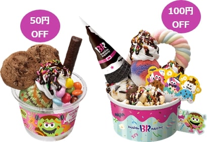 フランケンサンデーは50円引き、サプライズパーティーサンデーは100円引きになります。