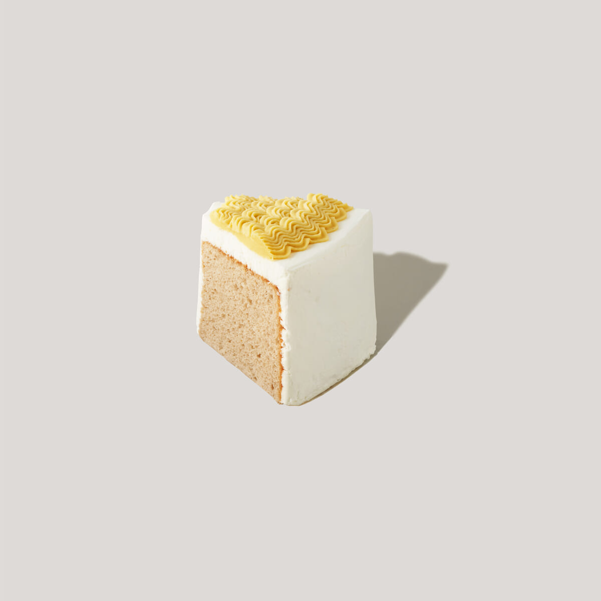 スイートポテトのシフォン生地をホイップクリームで覆い、トップにスイートポテトクリームを波上に絞っています。