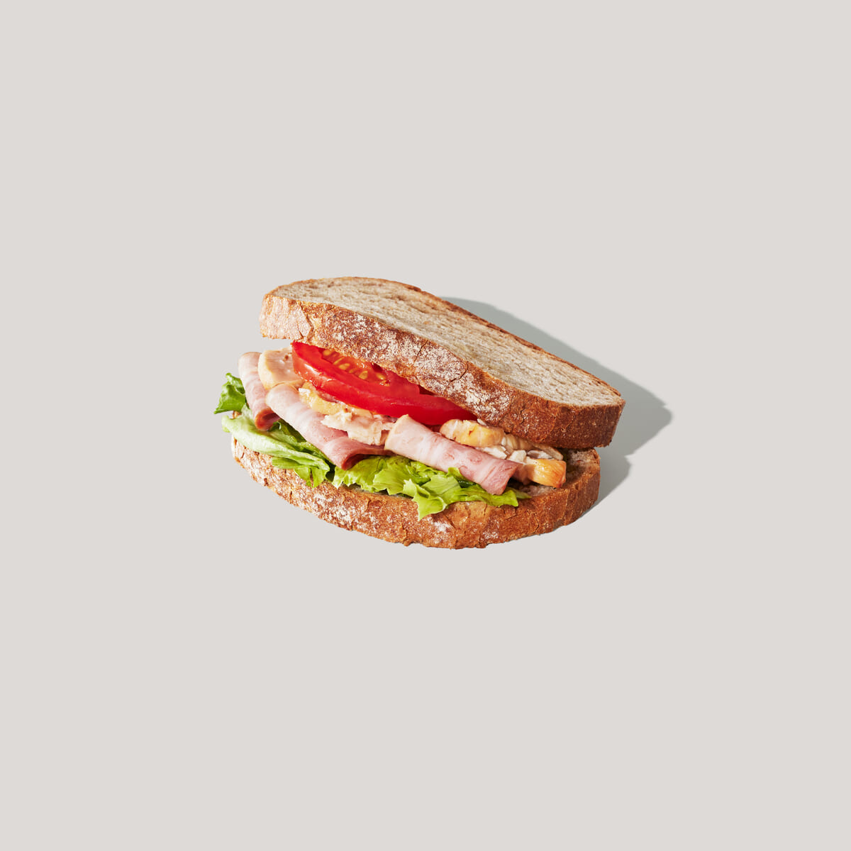 トマト、レタス、スモークを効かせたベーコンなどバラエティ豊かな具材と、ボリュームアップさせたローストチキンでより食べ応えのある贅沢なサンドイッチに。
