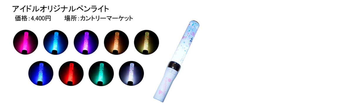 スペシャルライブにもぴったりなオリジナルペンライトや、ナイトイベントを彩る蓄光缶バッジ、イベント参加の思い出にもなるアクリルスタンドなどが販売されます。