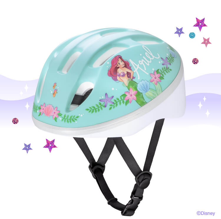ディズニー映画『リトル・マーメイド』のディズニープリンセス「アリエル」デザインの自転車とキッズヘルメット。