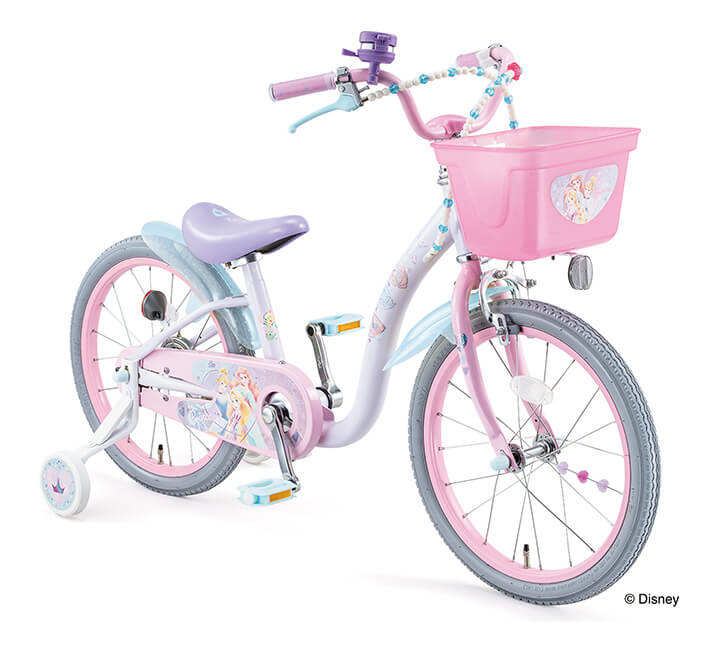 「ディズニープリンセス」デザインの自転車とキッズヘルメットは、ピンク、ブルー、パープルのゆめかわカラーが魅力!