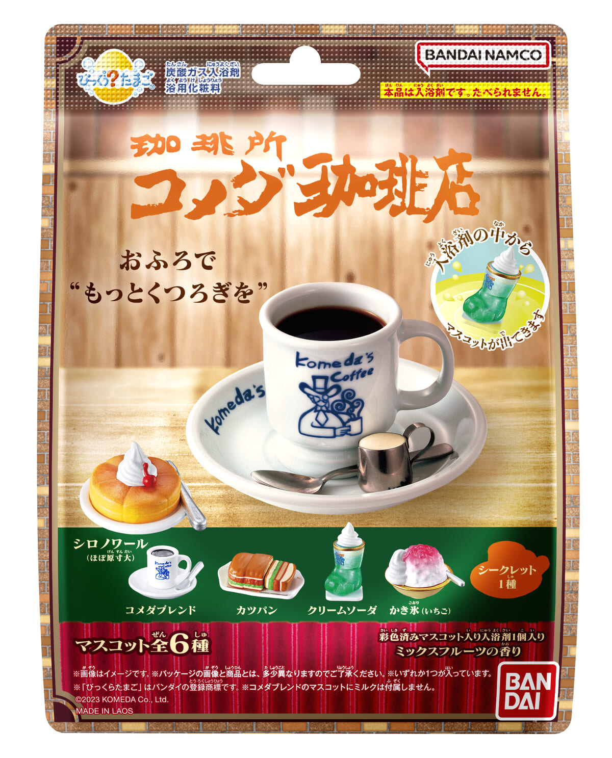 バンダイが展開する、マスコットが出てくる入浴剤「びっくらたまご」と、人気珈琲店の「コメダ珈琲店」がコラボレーション!