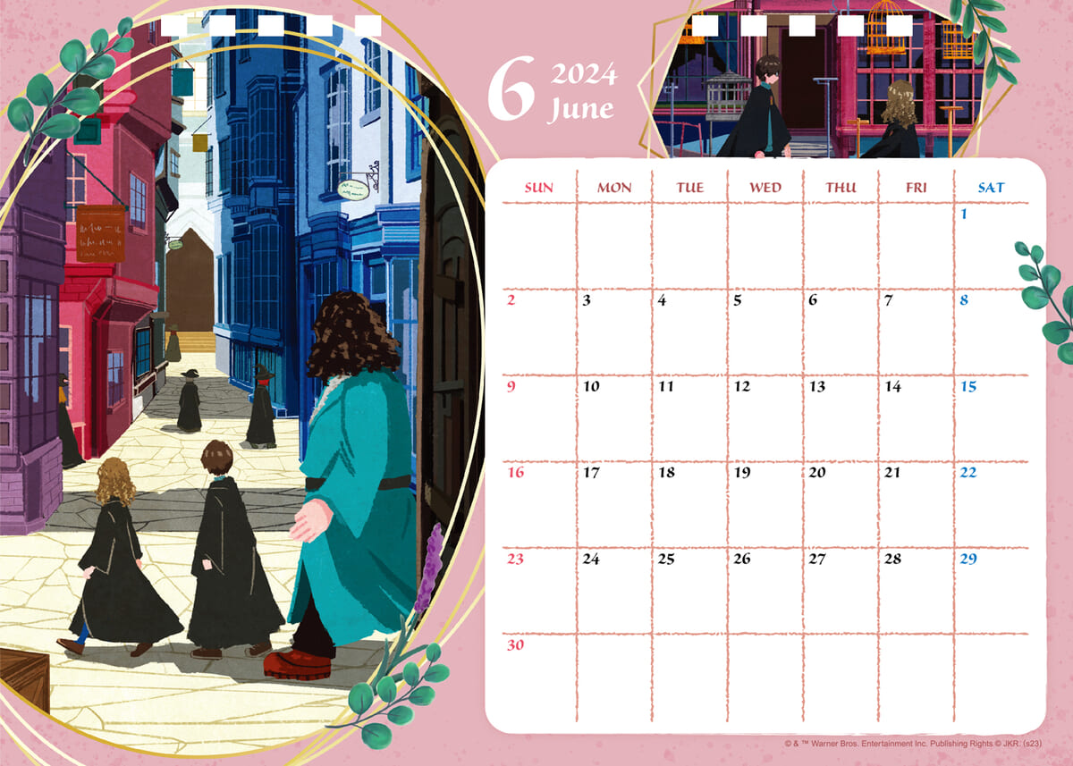 2024年6月は、カラフルなダイアゴン横丁の街並みが印象的なイラスト。