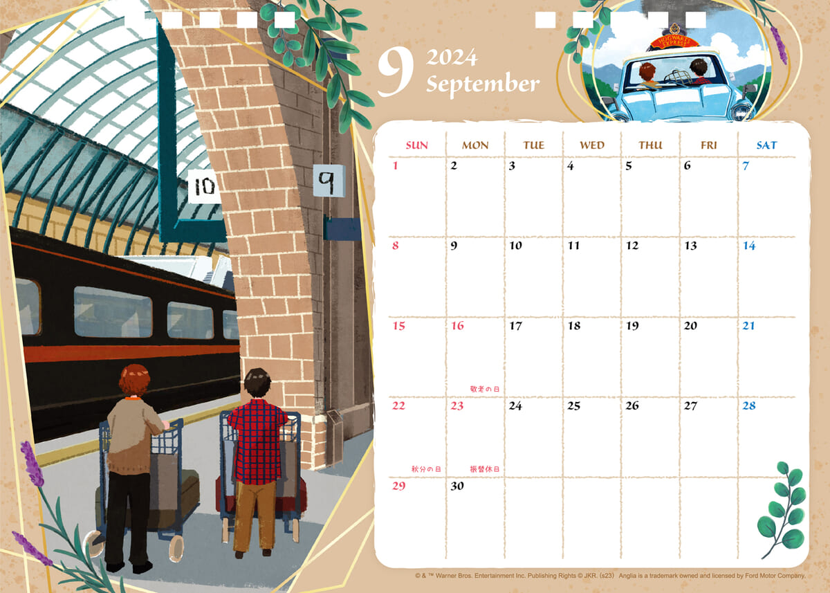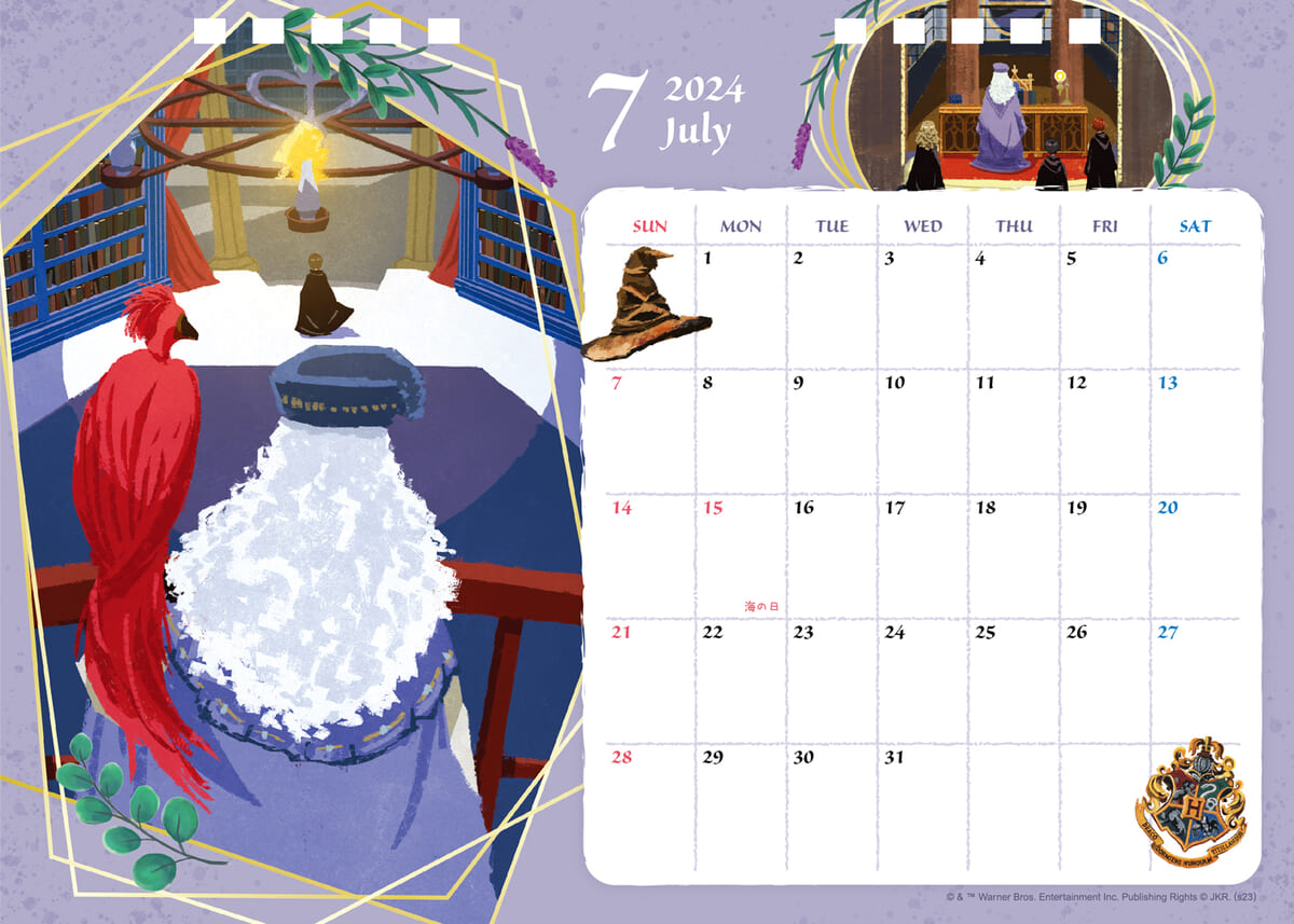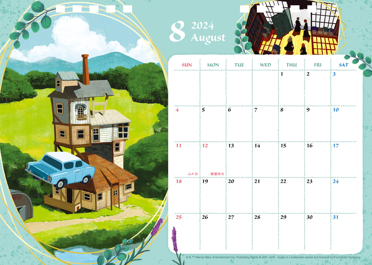 2024年8月は、ウィーズリー家が住む家が表現されたかわいいカレンダーです。