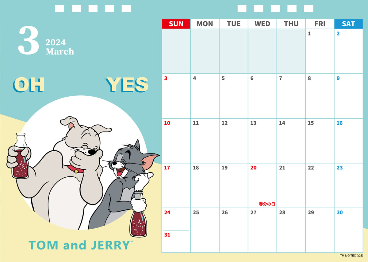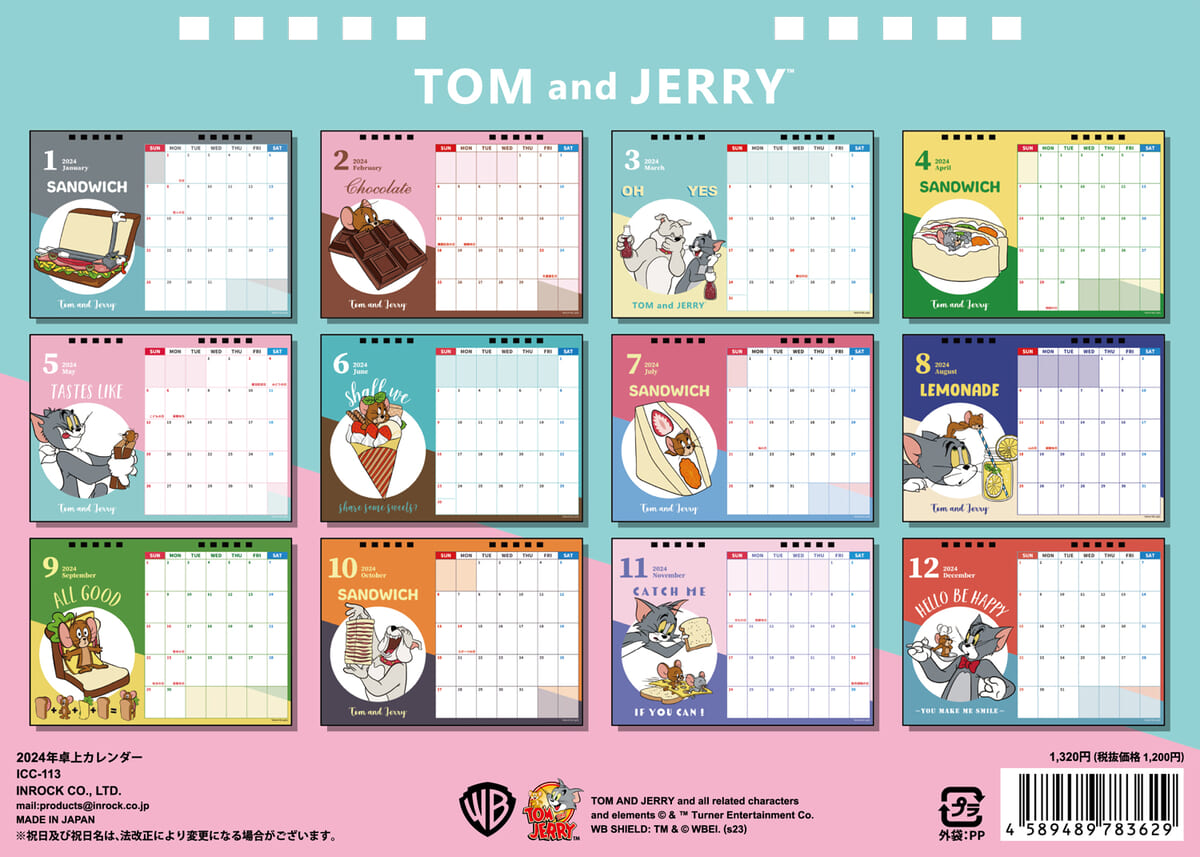 映画館で購入できるグッズを展開するインロックから、世界中で愛されている『トムとジェリー』デザインの2024年版卓上カレンダーが登場!