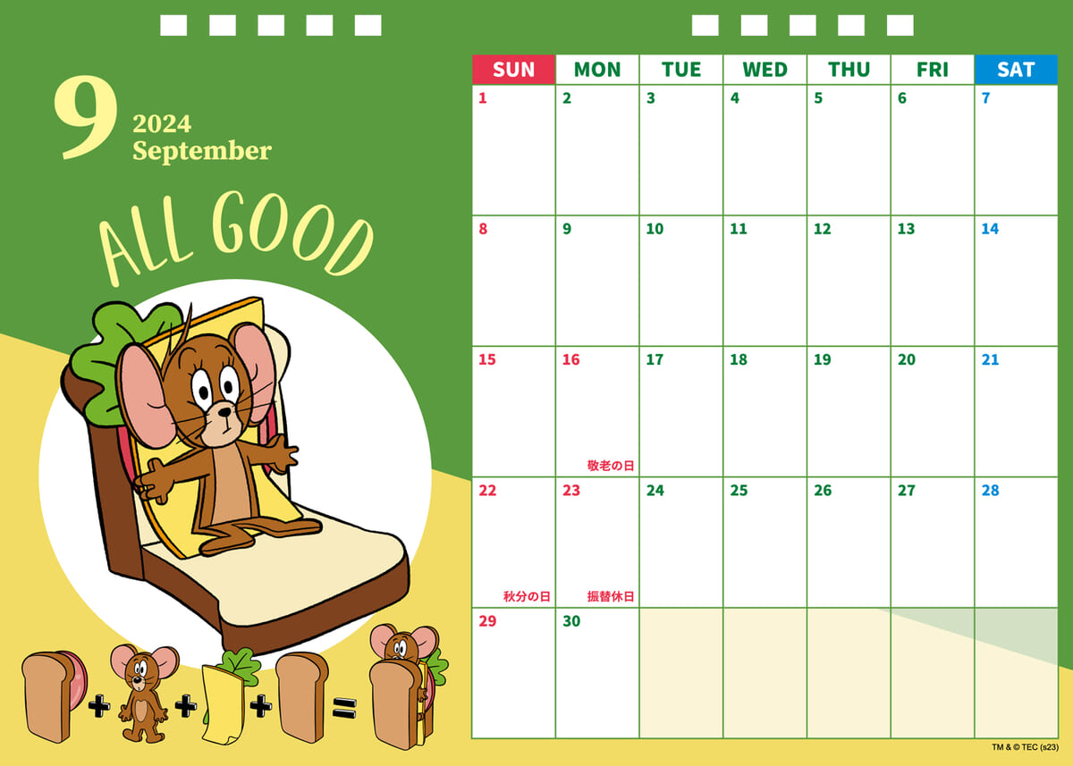 サンドイッチに挟まる「ジェリー」を描いた9月のカレンダー。