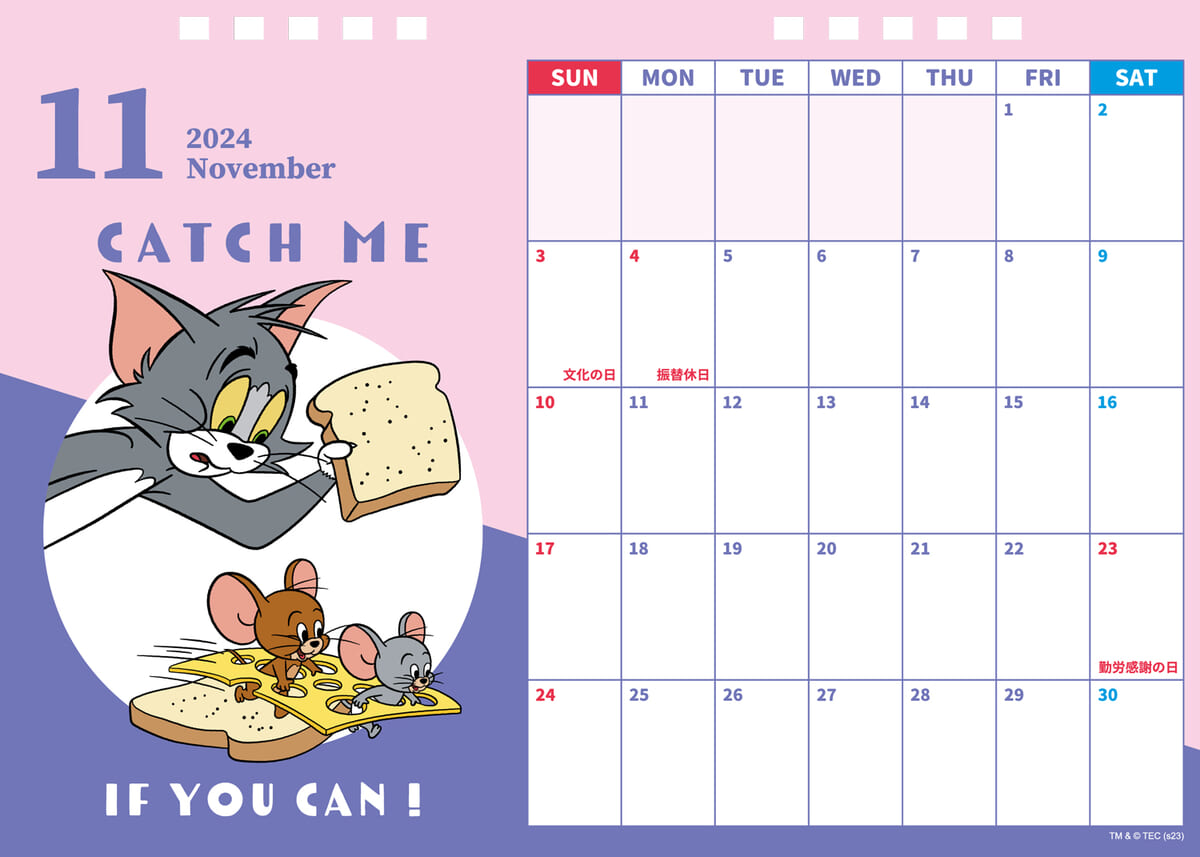 11月に描かれているのは「トム」と「ジェリー」「タフィー」