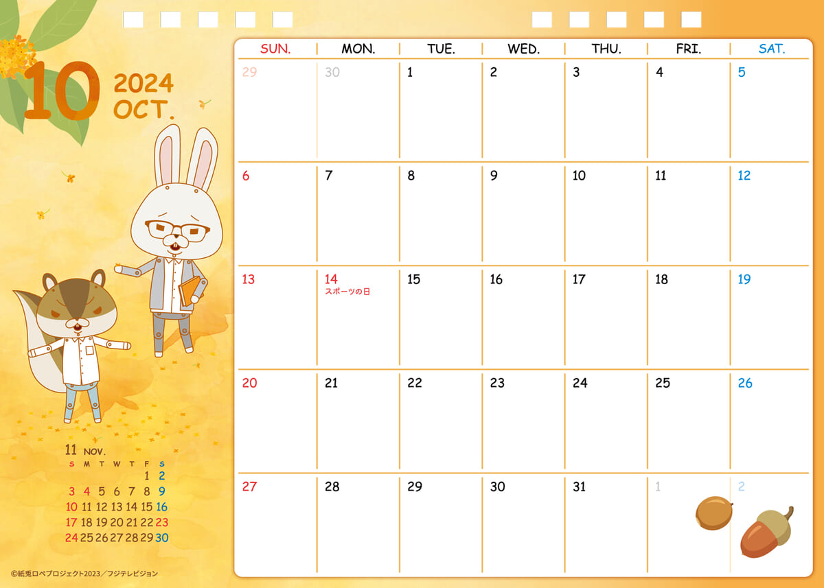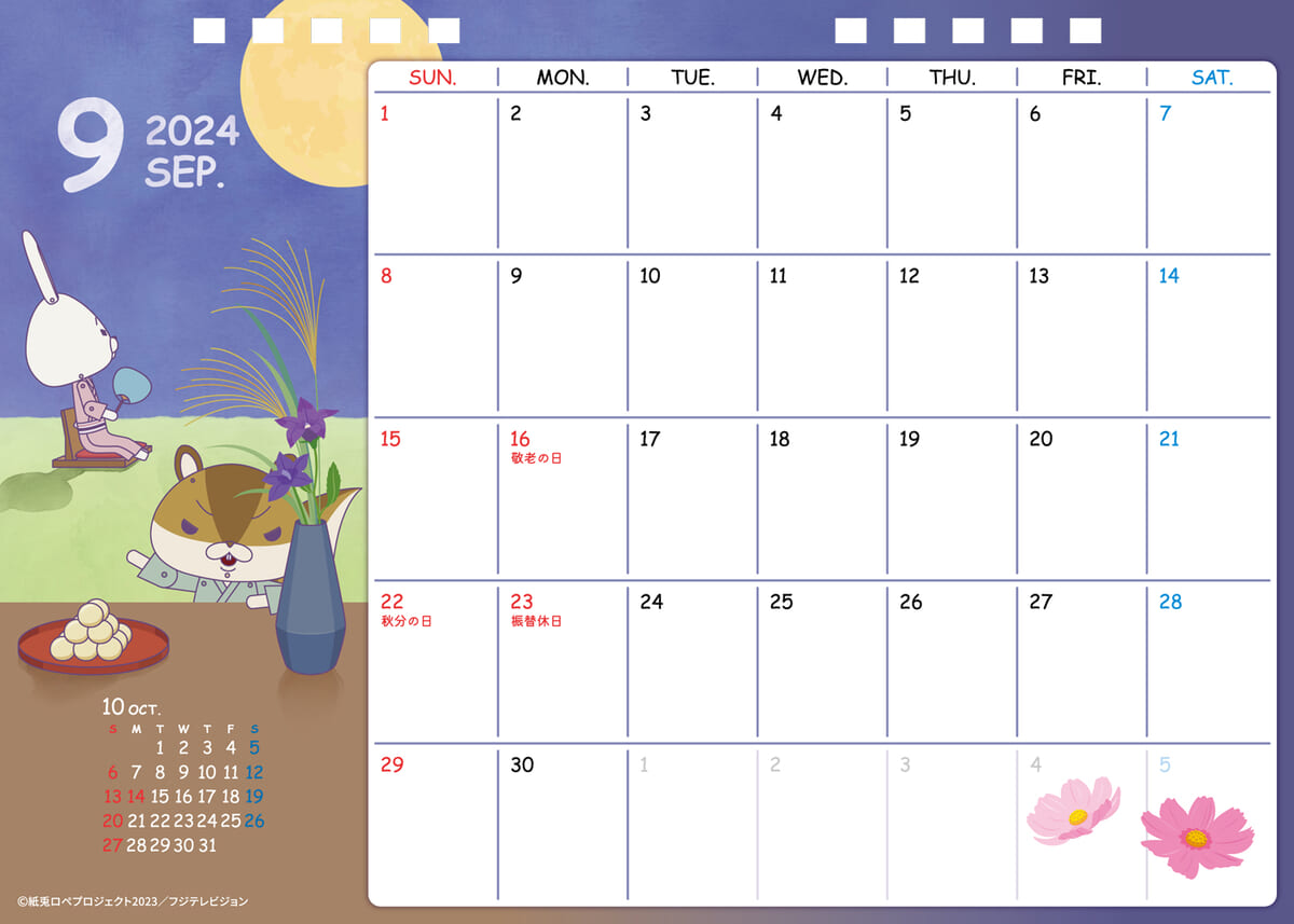 紙兎「ロペ」と紙リス「アキラ先輩」の日常を落とし込んだ、季節感あふれる月替わりのカレンダー。