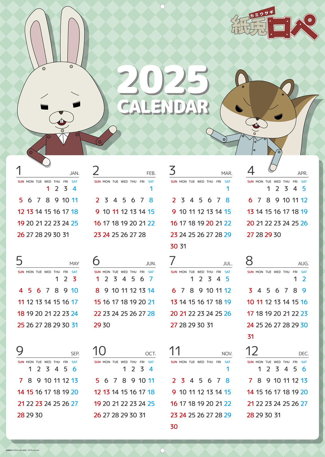 『紙兎ロペ』2024 壁掛けカレンダー