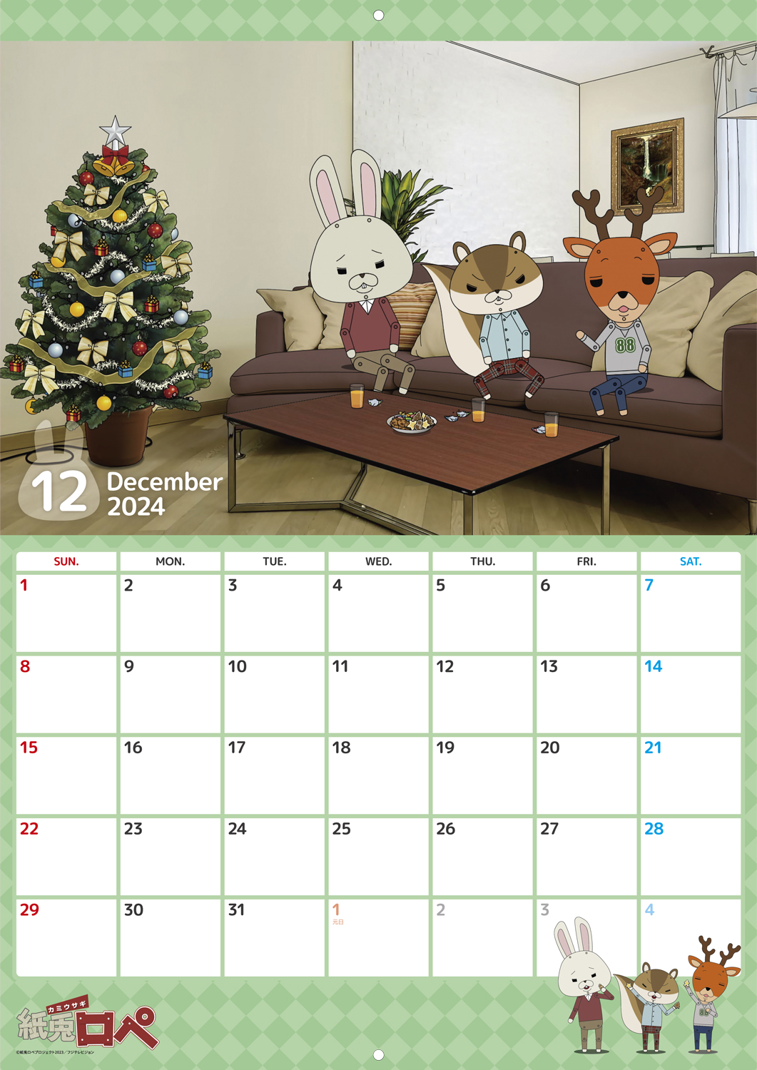 12月は「ロペ」の同級生「畑中」とクリスマスツリーを飾った部屋でお話しする姿がプリントされています。