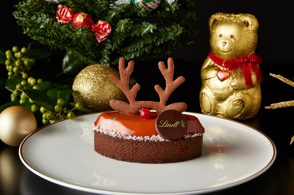 トナカイと世界中で愛されるリンツチョコレートとの出会いを、甘いチョコレートとキャラメルのかわいらしいケーキで表現したスイーツです!