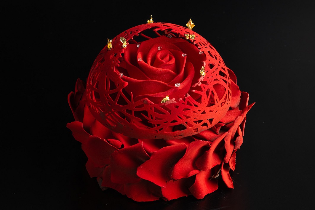 パティシエが1枚1枚、手作りで丁寧に仕上げたバラの花びらを模ったチョコレートをデコレーションした「Rose(ローズ)」