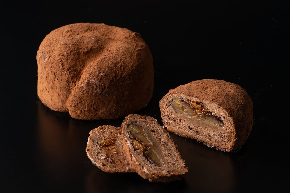 香り高いブランデーとラム酒に付け込んだマロンやイチジクを、仏ヴァローナ社のカカオニブやココアを用いた、ほろ苦い生地で優しく包み込んでいます。