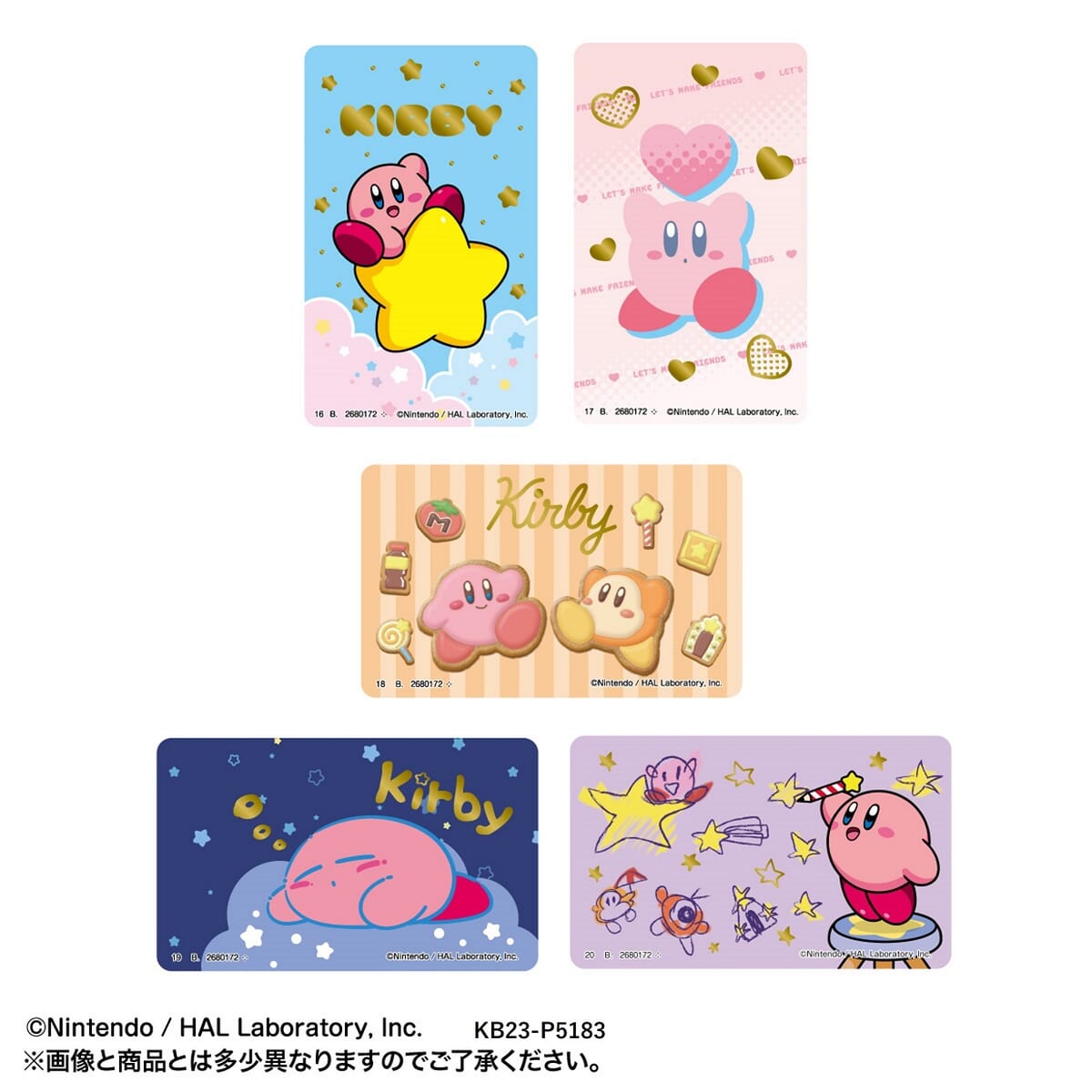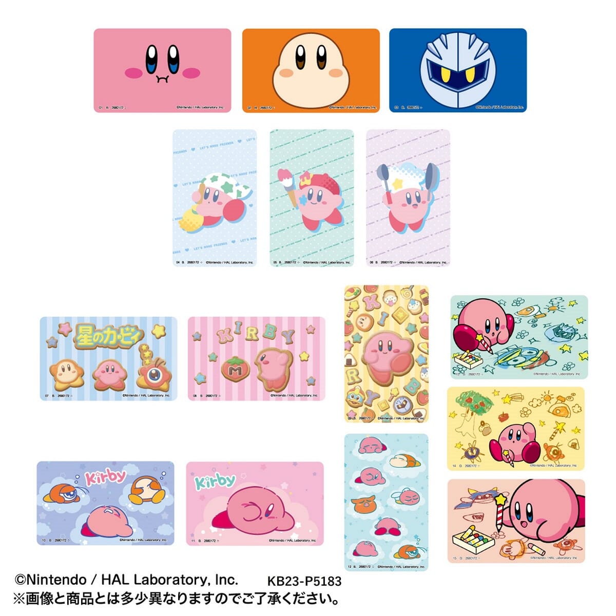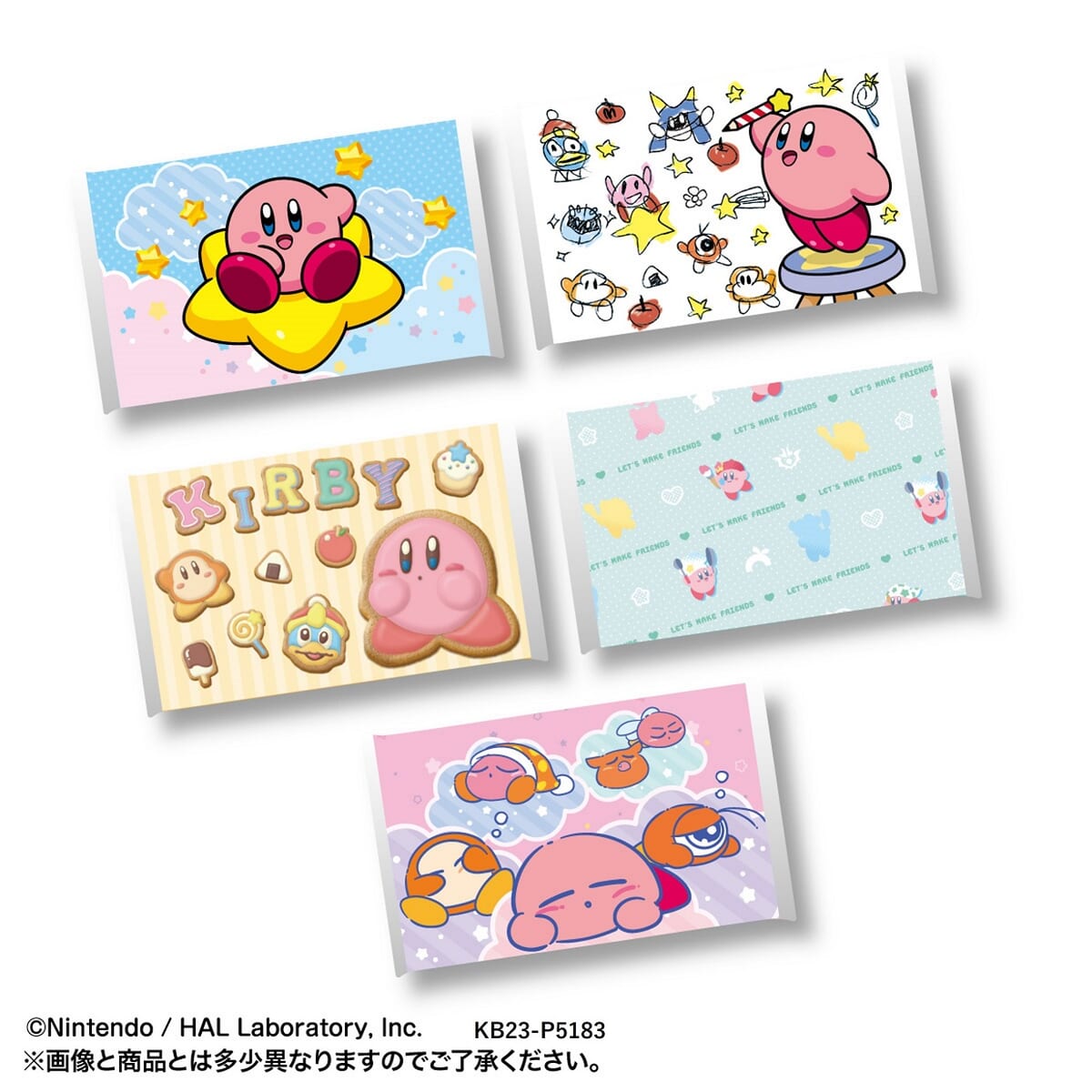優しいデザインタッチが特徴の「おやすみカービィ」より各3種類ずつの全15種類です。