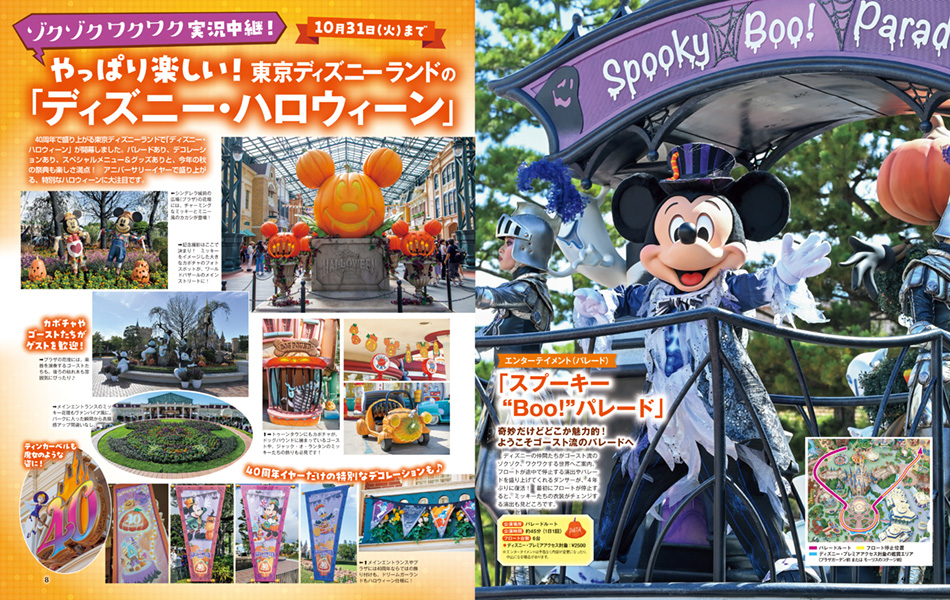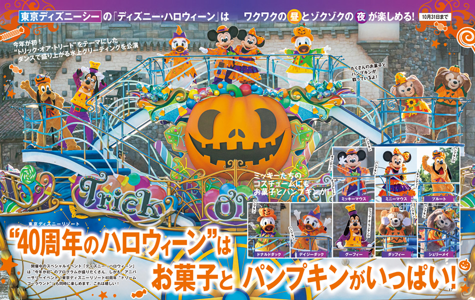 東京ディズニーランド「スプーキー“BOO!”パレード」や、東京ディズニーシーで初公演の「ディズニー・ハロウィーン・グリーティング」などの情報が詰まった一冊です☆