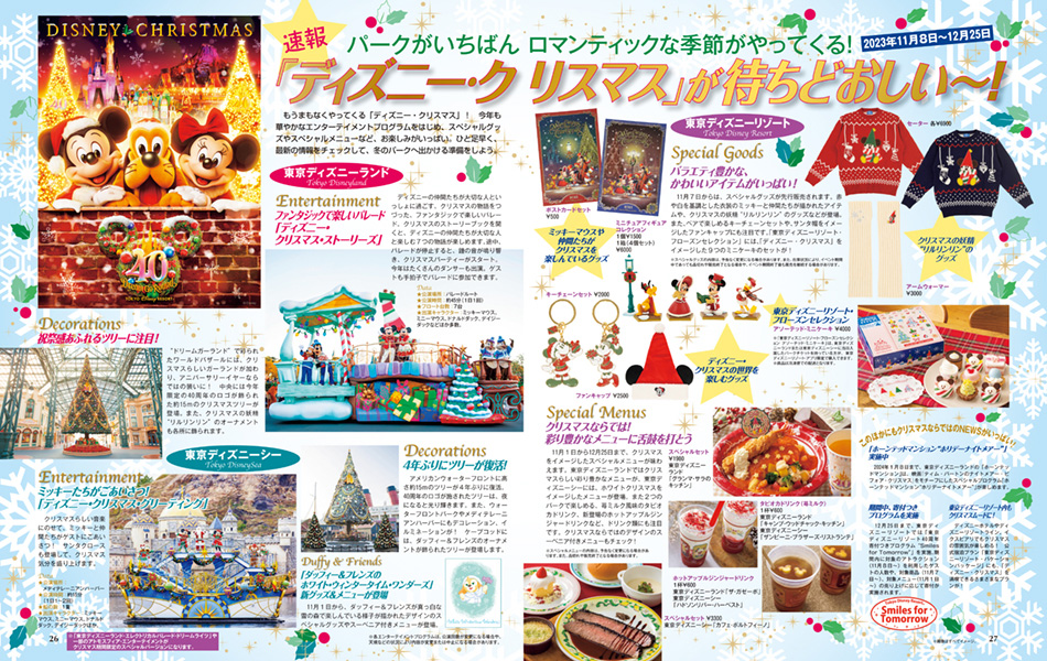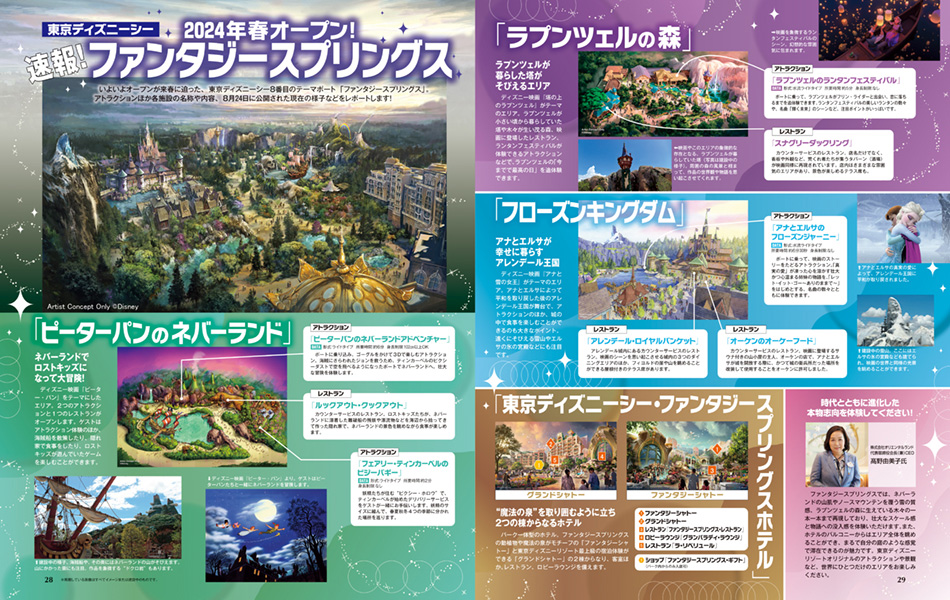 そのほか、東京ディズニーシーに2024年春オープン予定のファンタジースプリングスの続報や、ディズニー・クリスマス速報などの情報も盛りだくさんです☆