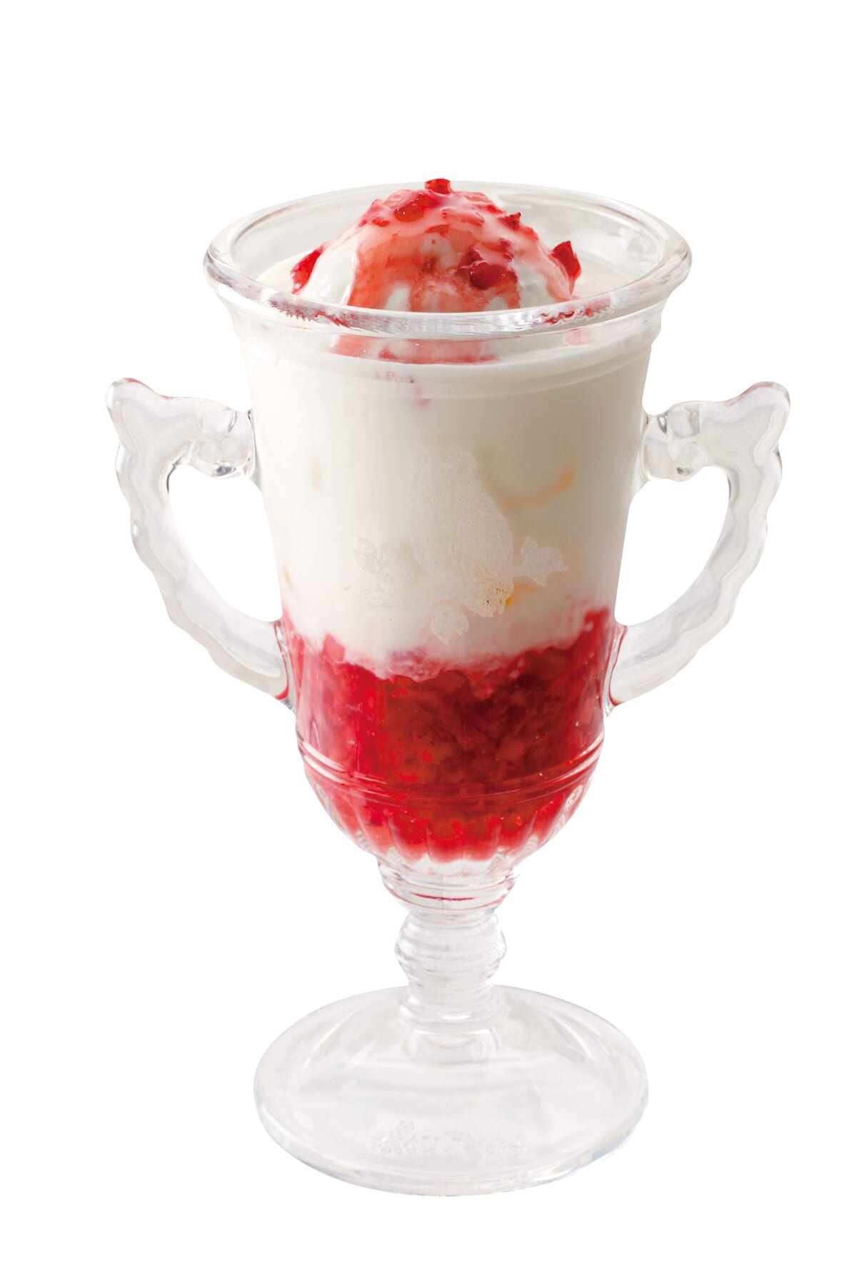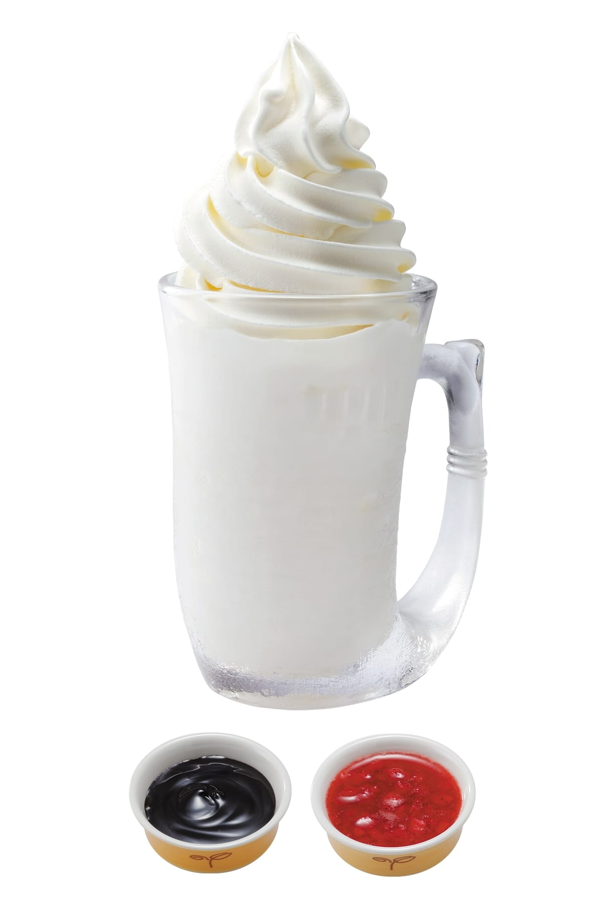 つぶつぶ食感のイチゴミルクに、北海道ソフトクリームをトッピングした「びっくりイチゴミルク」