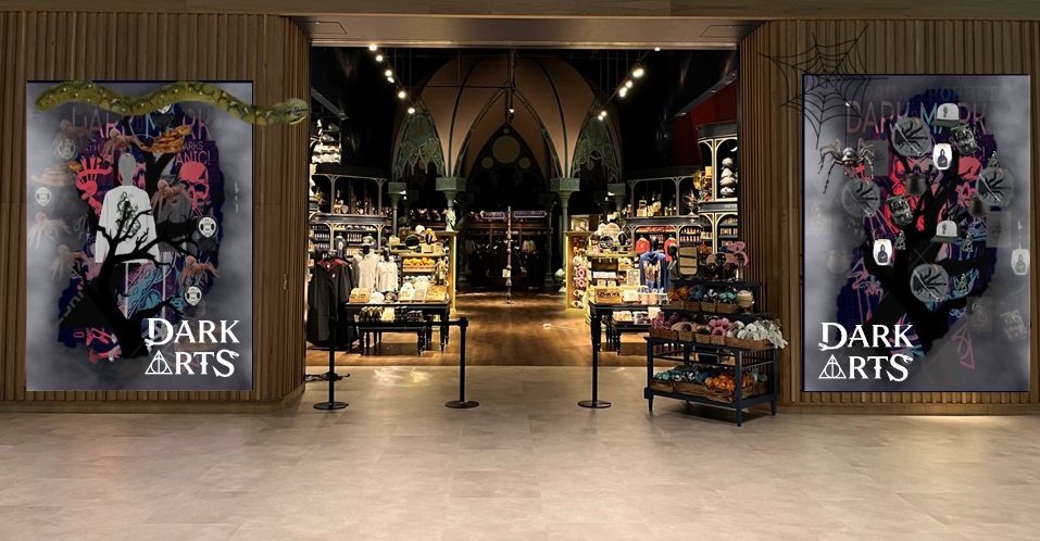 世界最大のハリー・ポッターショップ「メインショップ」では、ハロウィーンの時期に合わせて、闇の魔術に関連するグッズをテーマにしたディスプレイ展開を実施。