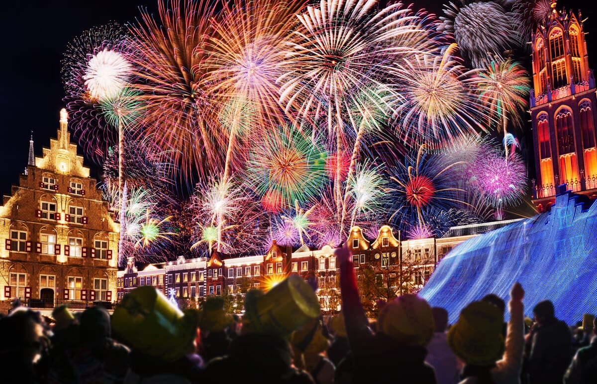 ヨーロッパの街並みとイルミネーションの中で迎えるカウントダウン