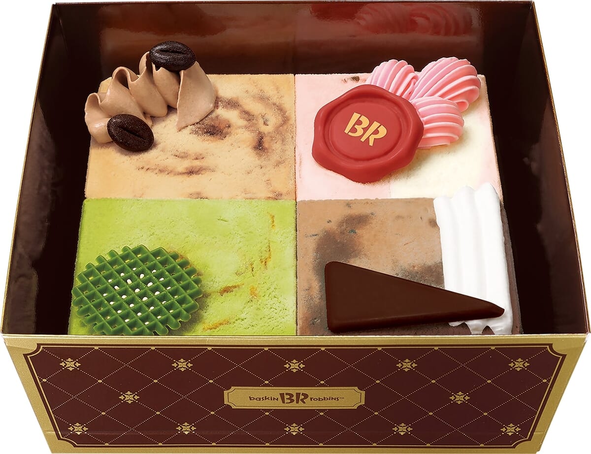 4つのピースがひとつになった、食べやすいサイズのアイスクリームケーキ。