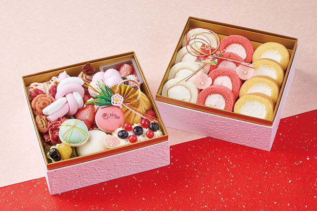 「パティスリーモンシェール」は、人気のロールケーキやマカロンなど彩よく詰合せた迎春限定スイーツおせち。