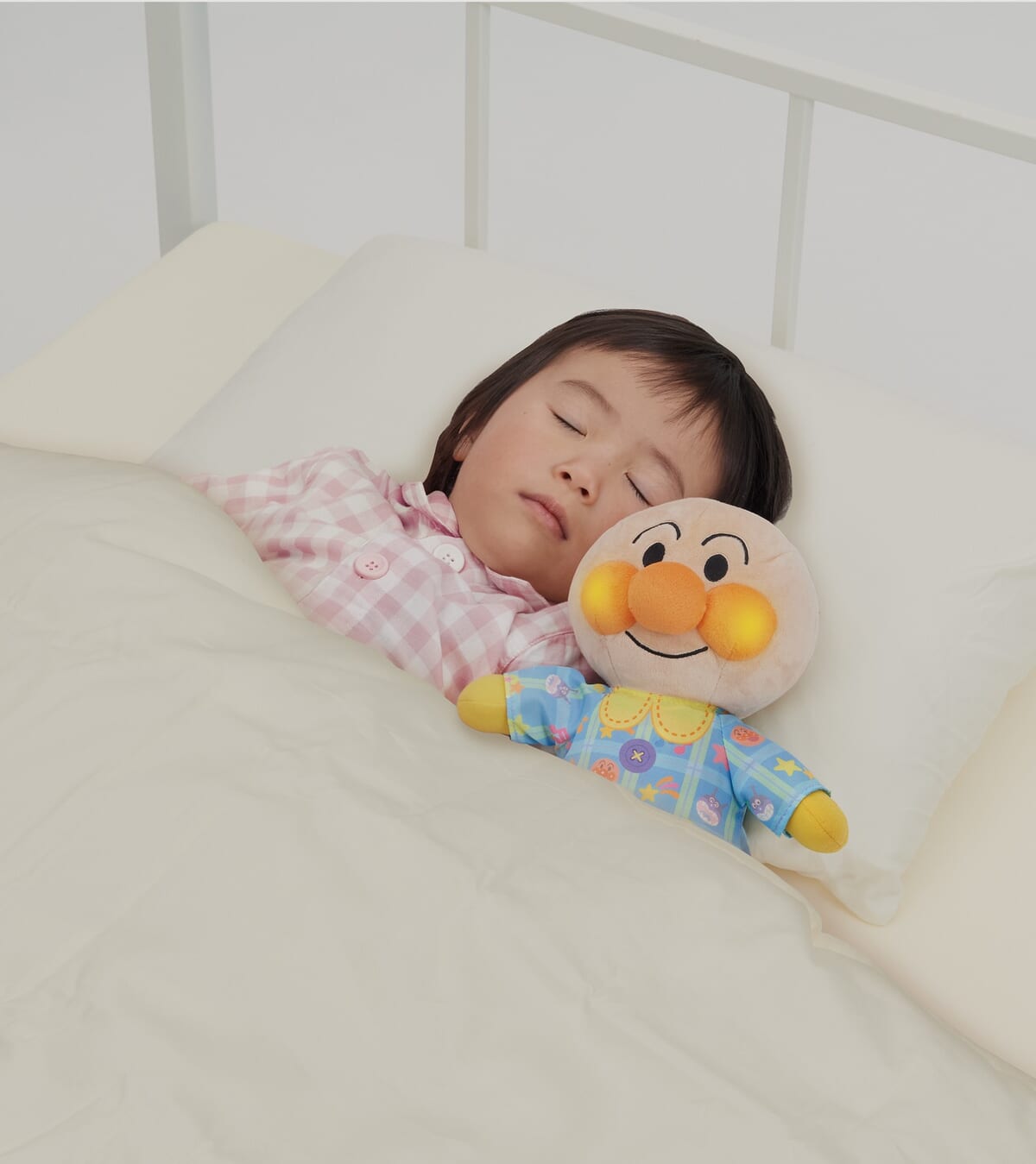 お子さまの眠りを促すおしゃべりと、優しく点灯する頬で、「アンパンマン」がお子さまの入眠を助けるおもちゃ。