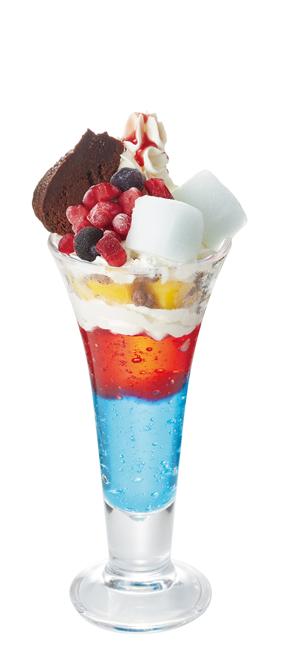 パフェのベースには甘いルビーチョコドリンクを使用した、“飲めるパフェ”となっています。