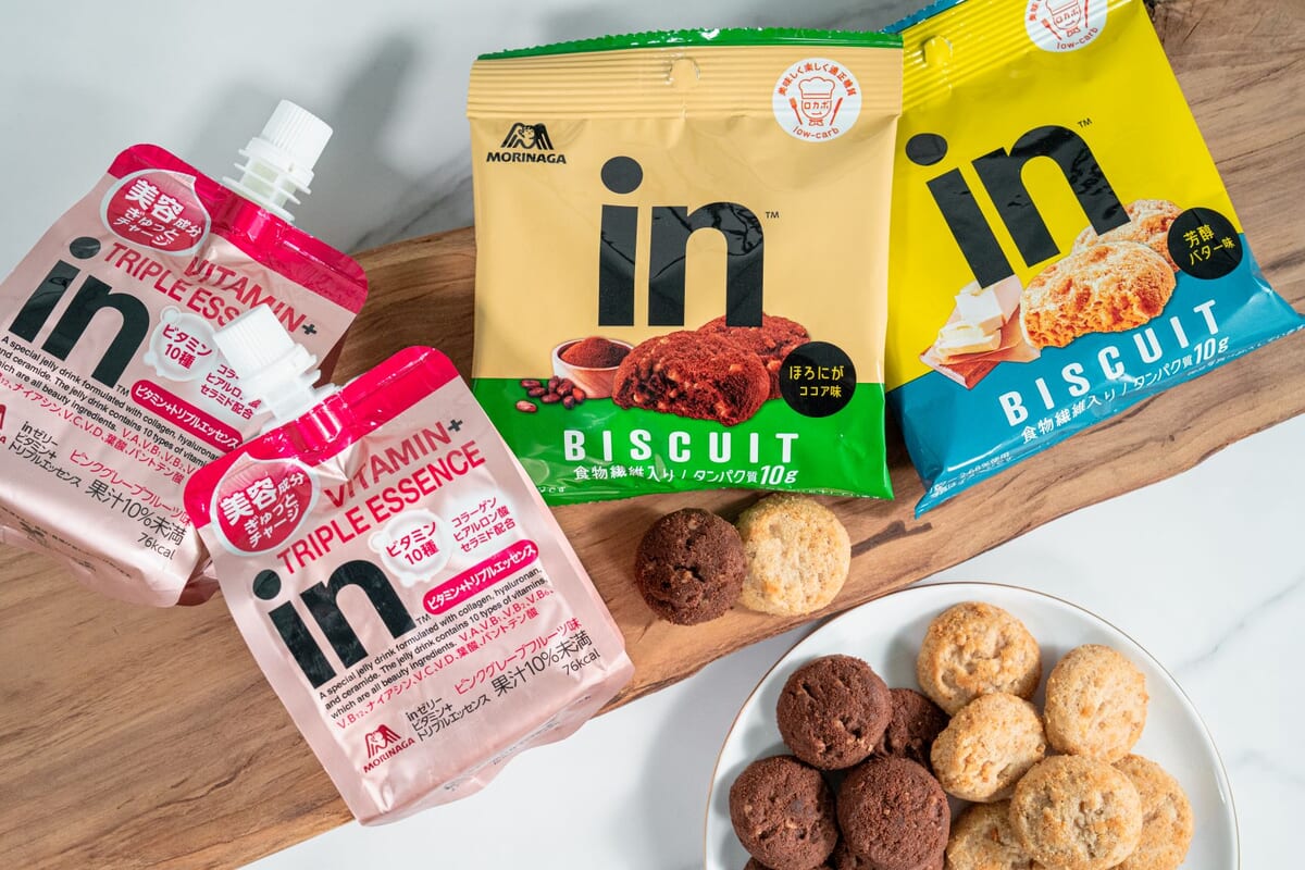 森永製菓の「in」ブランドから、「inゼリー ビタミン+ トリプルエッセンス」「inビスケット 芳醇バター」「inビスケット ほろにがココア」が登場!