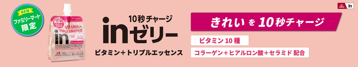 「inゼリー」「inバー」を中心に、スポーツシーンや朝などの時間のない時にいつでも手軽に栄養を補給できる「in」ブランド。