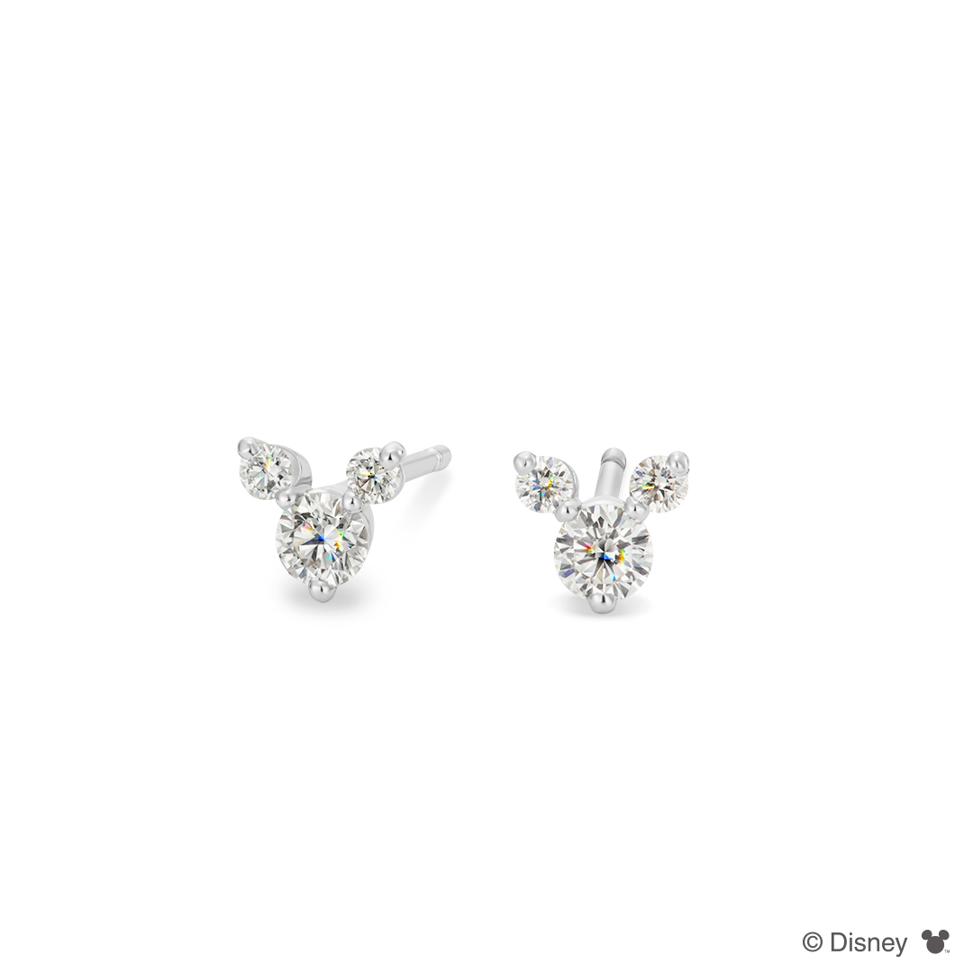 3ピースのダイヤモンドで「ミッキーマウス」を表現したピアス。