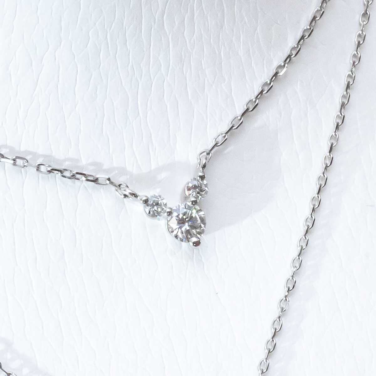 シンプルなデザインで、3ピースのダイヤモンドが胸元に華やかさをプラスしてくれます。
