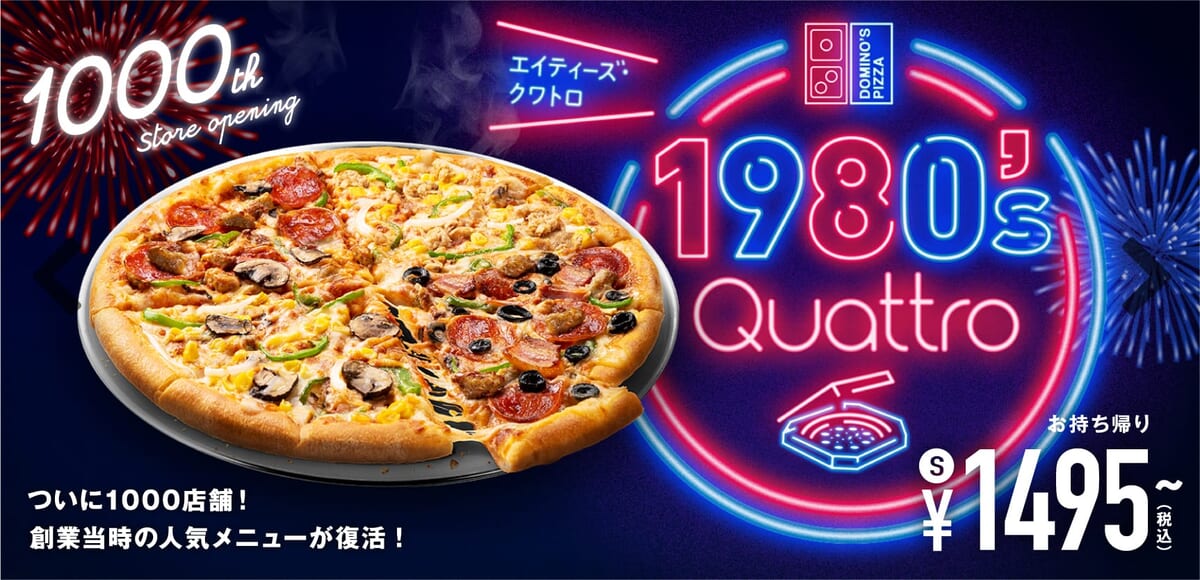 国内1000店舗目の出店を記念して「ドミノ・ピザ」から「1980’s・クワトロ」が期間限定で登場します。