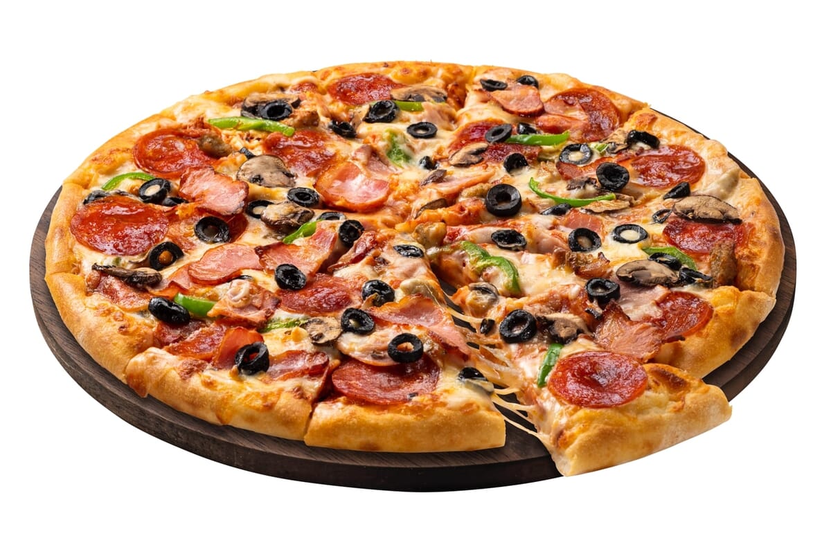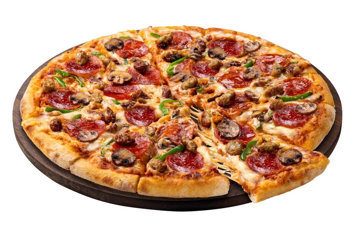 人気トッピング8種類を贅沢に使用した定番人気メニューとして四半世紀に渡り愛された「ドミノ・スーパーデラックス」