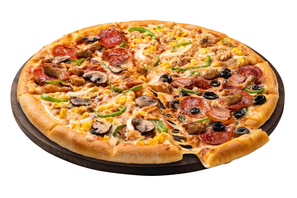 ドミノ・ピザの1985年からの創業期に人気を博した、4つの大人気メニューが一緒に楽しめるピザ。