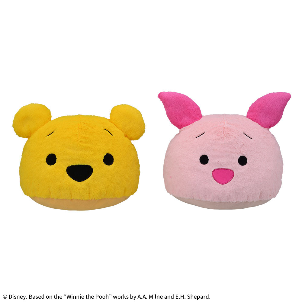 眉尻を下げた表情が印象的な「くまのプーさん」と「ピグレット」のドーム型のクッション。