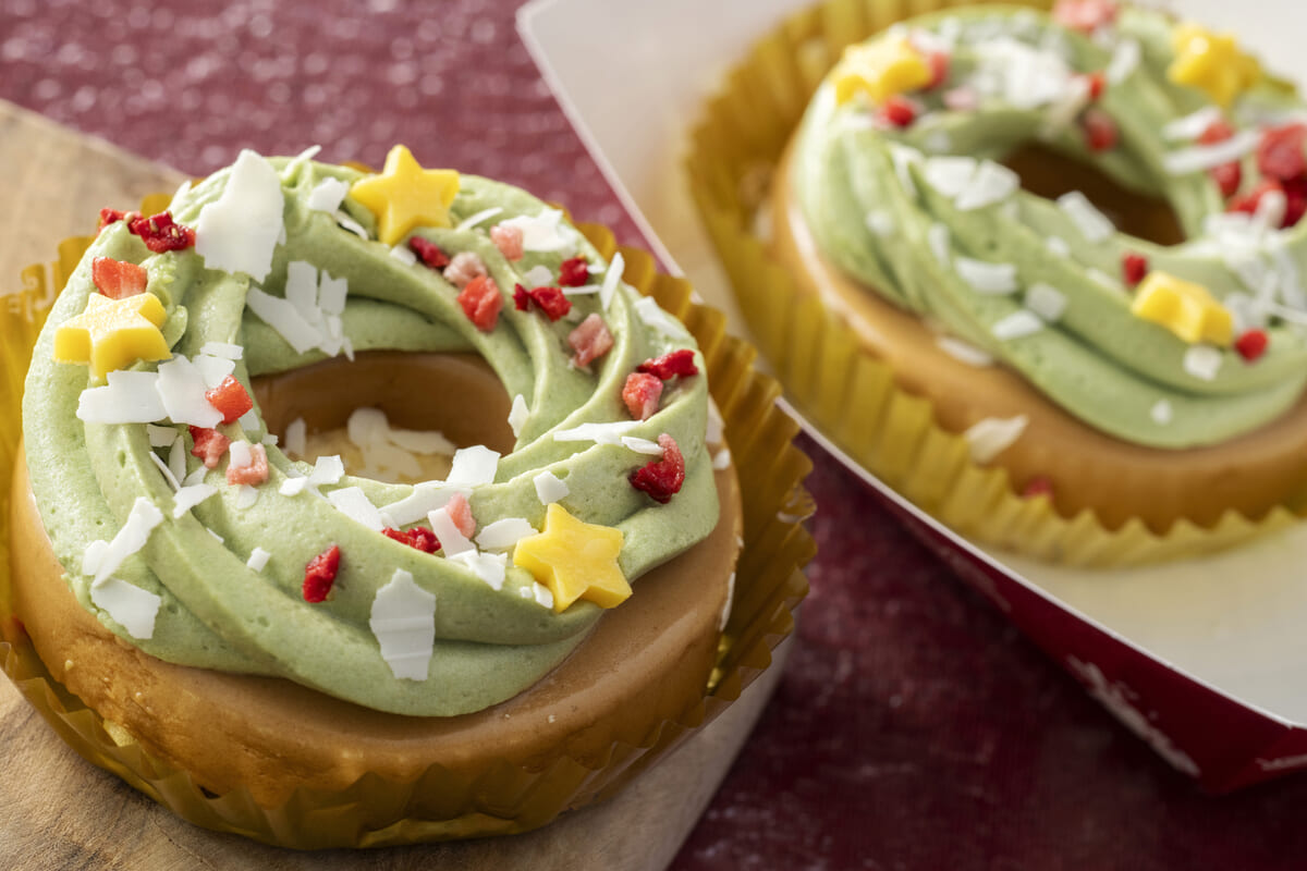 クリスマスリースに見立てたデコレーションが華やかなムースケーキ。
