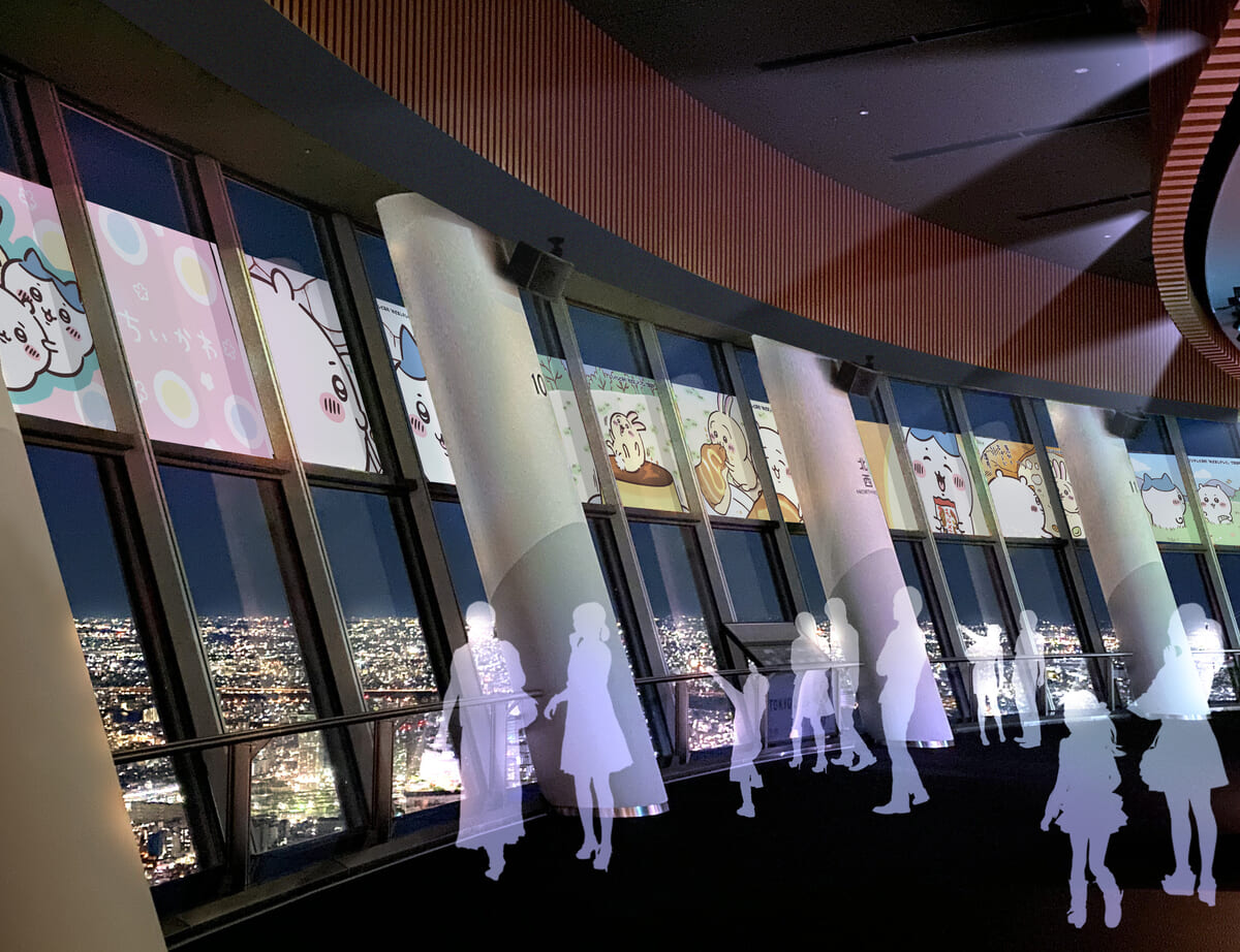 地上450メートルの天望回廊を中心に「ちいかわ」を始めとしたキャラクターたちがお出迎え。