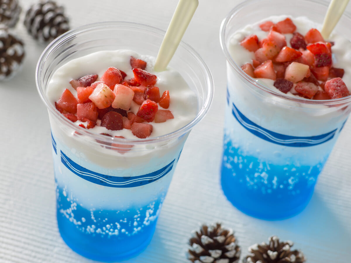 ベースの青は東京ディズニーシーの海を、ストロベリーの赤とホイップの白はクリスマスを表現。