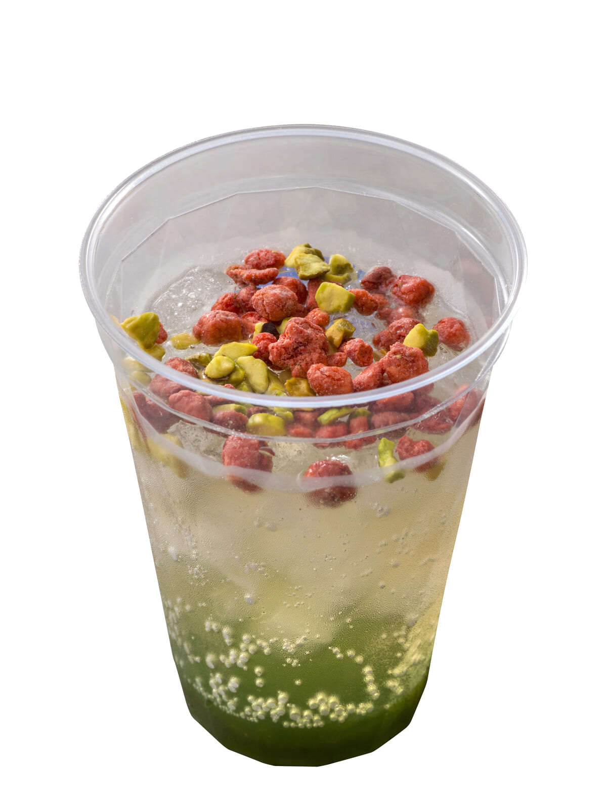 甘酸っぱい爽やかな味わいに、ピスタチオとドライストロベリーの食感をプラス。