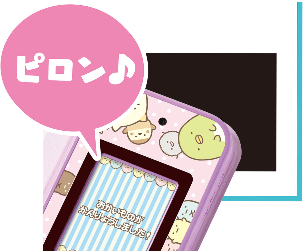 また、「かざしてけっさい」は、「すみっコスマホ」の本体を黒色のものにタッチすることで、スマホのタッチ決済を疑似体験!