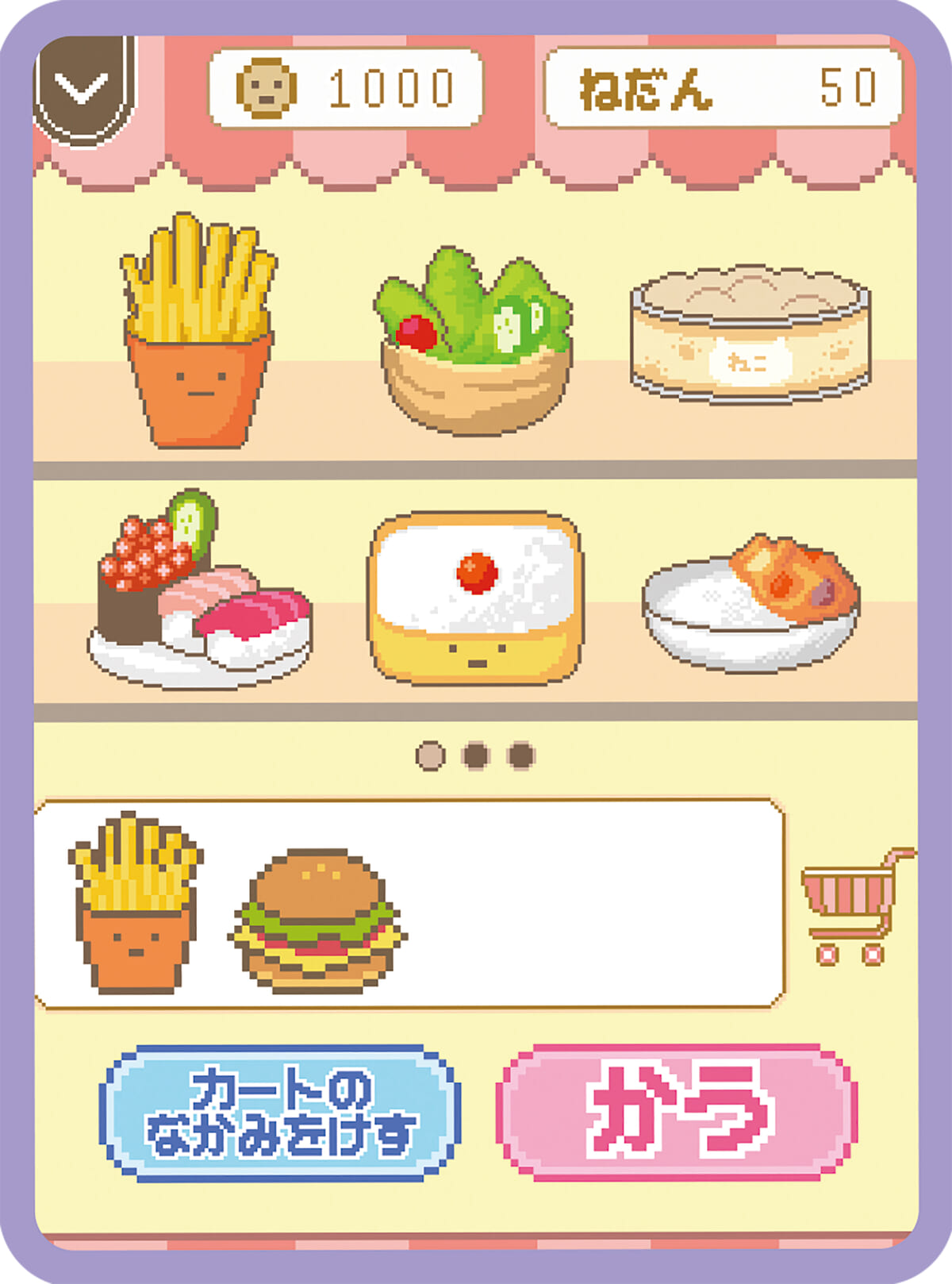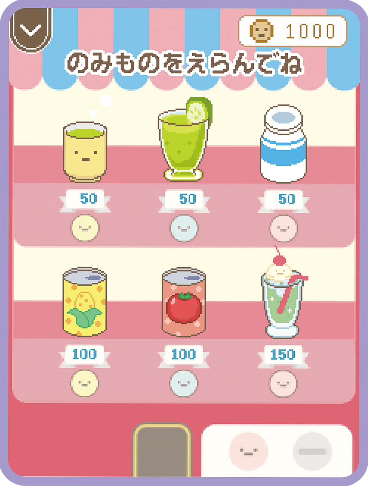 もらったコインを使って「アプリストア」で好きなアプリ(全64種類)を購入したり、「ネットスーパー」で「すみっコ」にあげるアイテムを買うことができます。