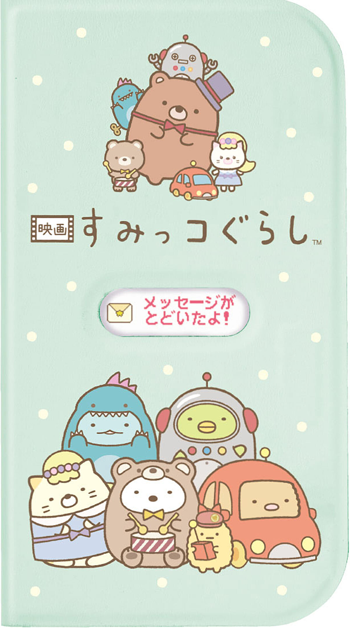 スマホカバーには「くま工場長」や、おもちゃになった「すみっコ」たちがデザインされています☆