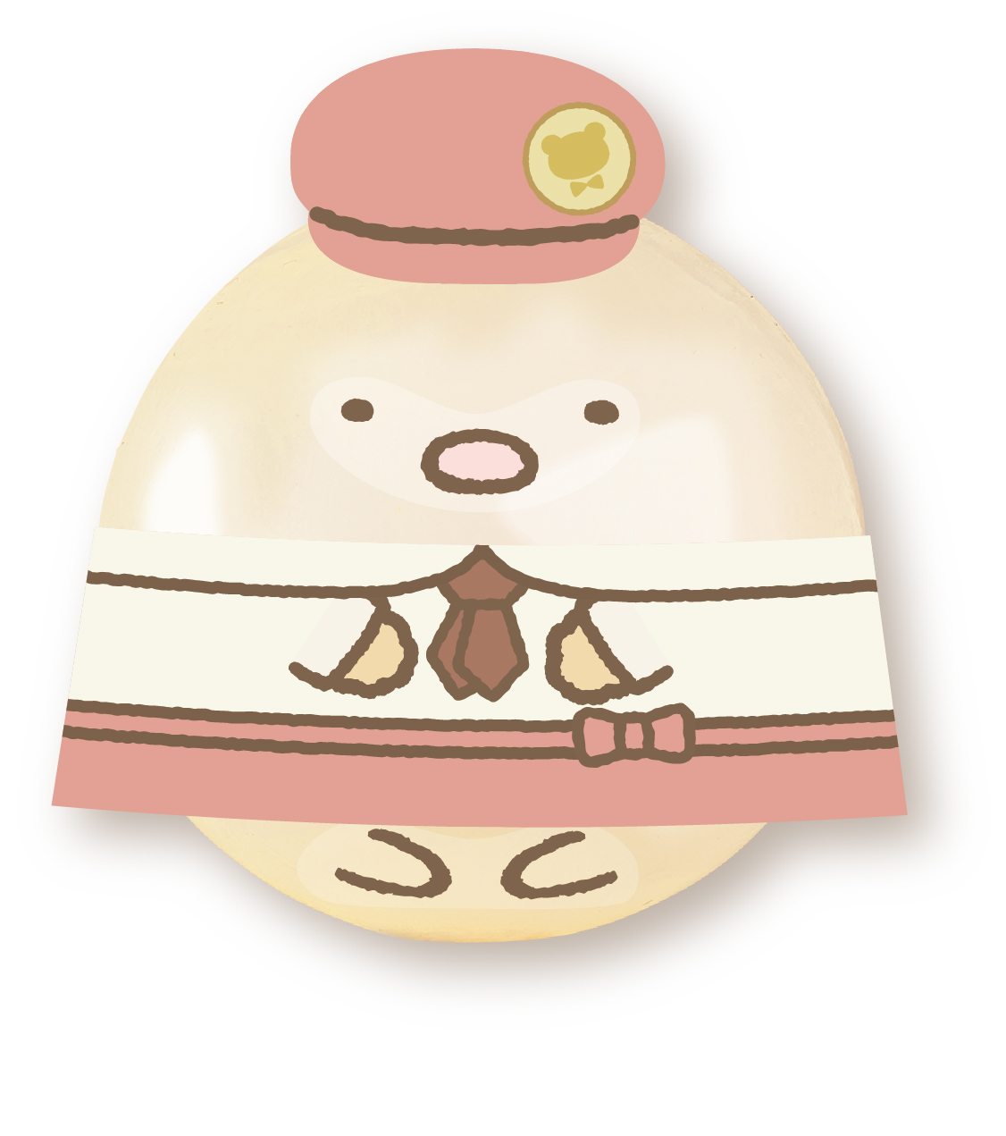 「しろくま」は、「ふろしき」をスカーフのように巻いたピンクの制服姿です。
