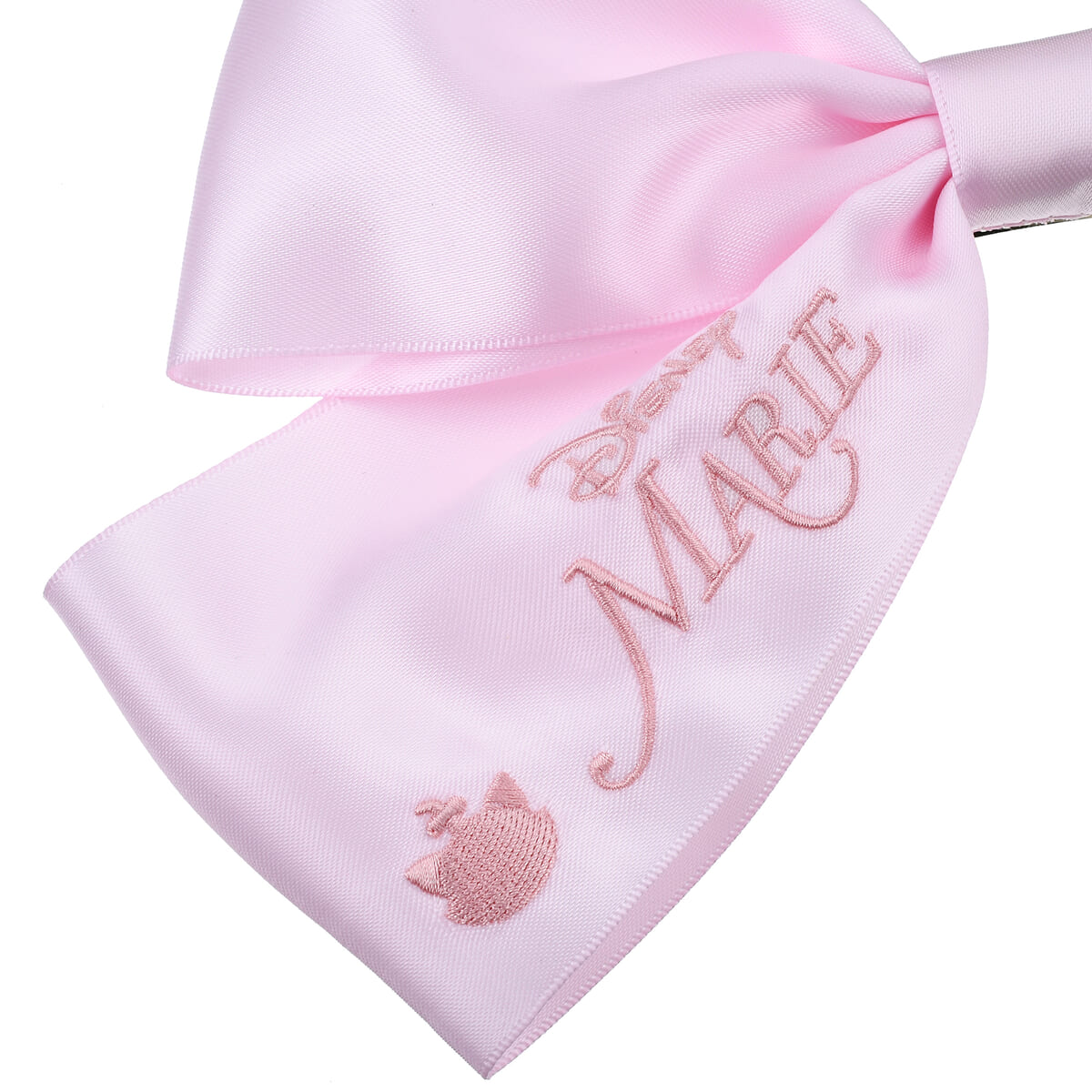 ラブリーなピンクの生地に、ピンクの糸でキャラクター刺しゅうをあしらったリボン。
