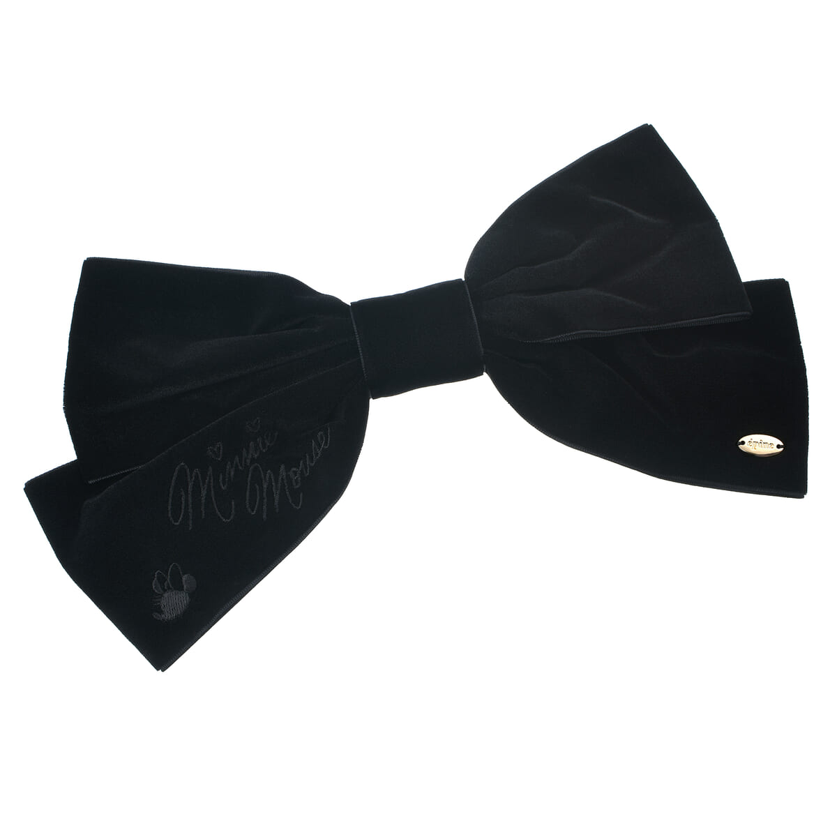 ブラックの生地に、「ミニーマウス」の刺しゅうをあしらったバレッタ。