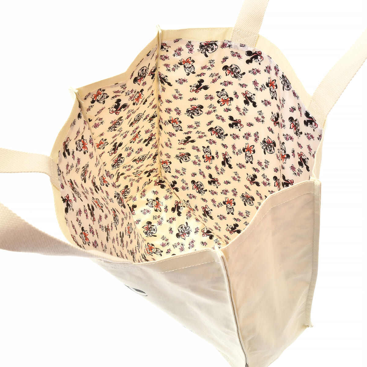 内生地は「ミニーマウス」が総柄でデザインされた、ロマンティックなプリント柄。